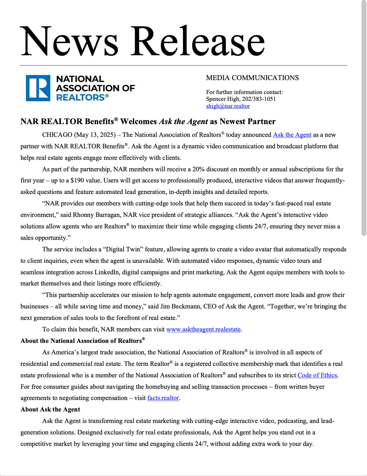 NCRMLS partners with Ask the Agent to brings cutting-edge interactive video to real estate professionals.