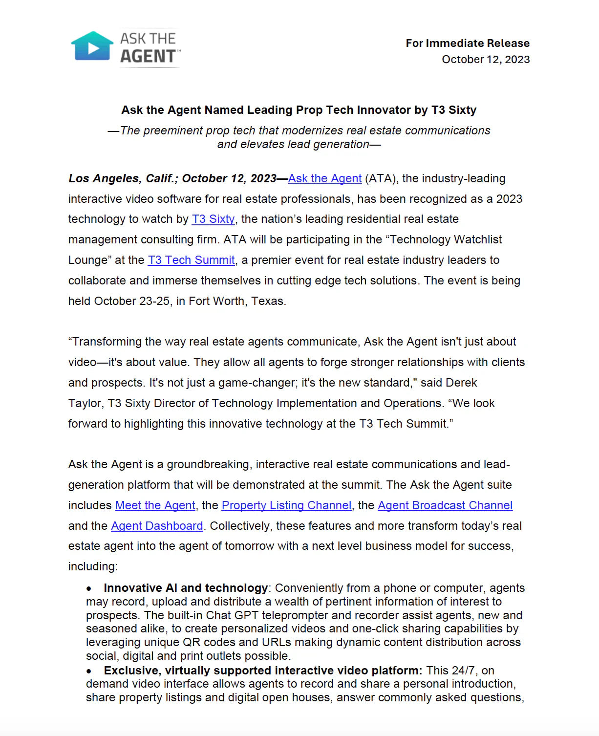 Ask the Agent - Showcases and Generates Leads with a Digital Open House